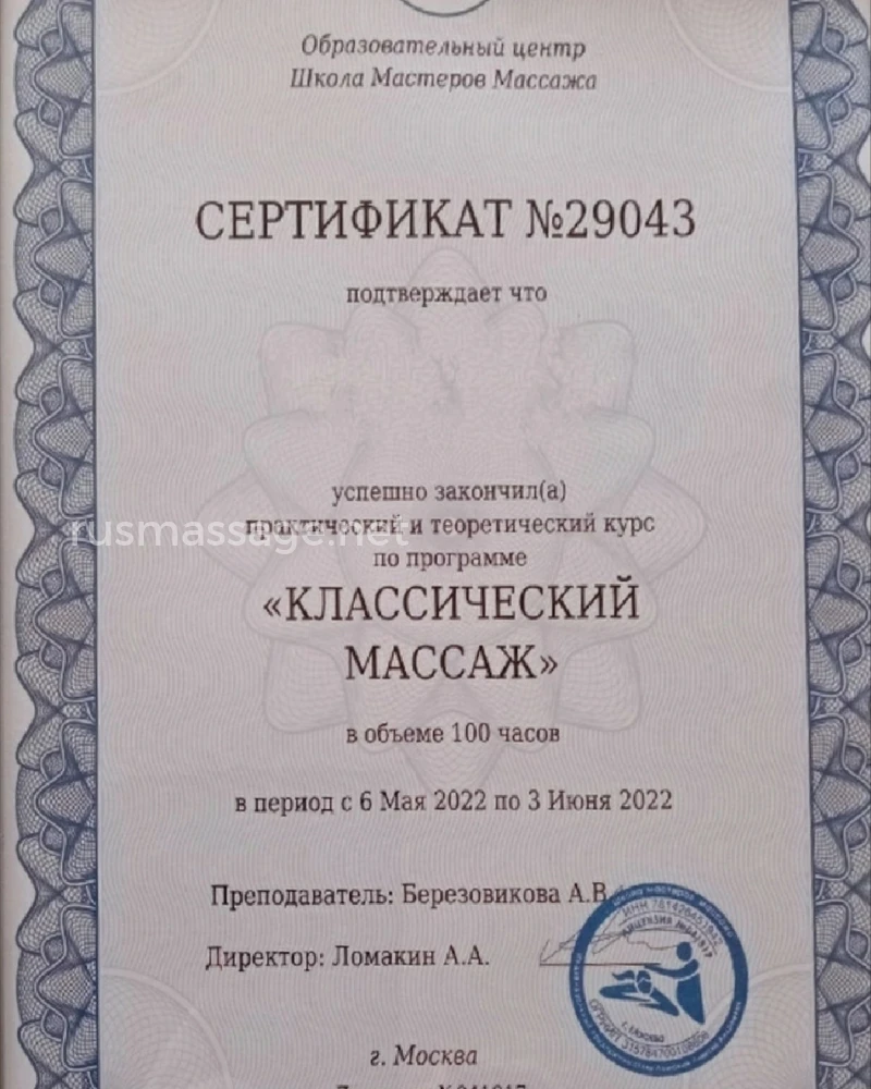 Мой диплом – это не просто бумажка, это ключ к вашему идеальному самочувствию. А еще – это доступ к целой вселенной массажных техник! Хотите классику, которая всегда в моде? Пожалуйста! А что насчет прилива энергии, способного свернуть горы? Спортивный силовой массаж – ваш личный турбо-ускоритель!